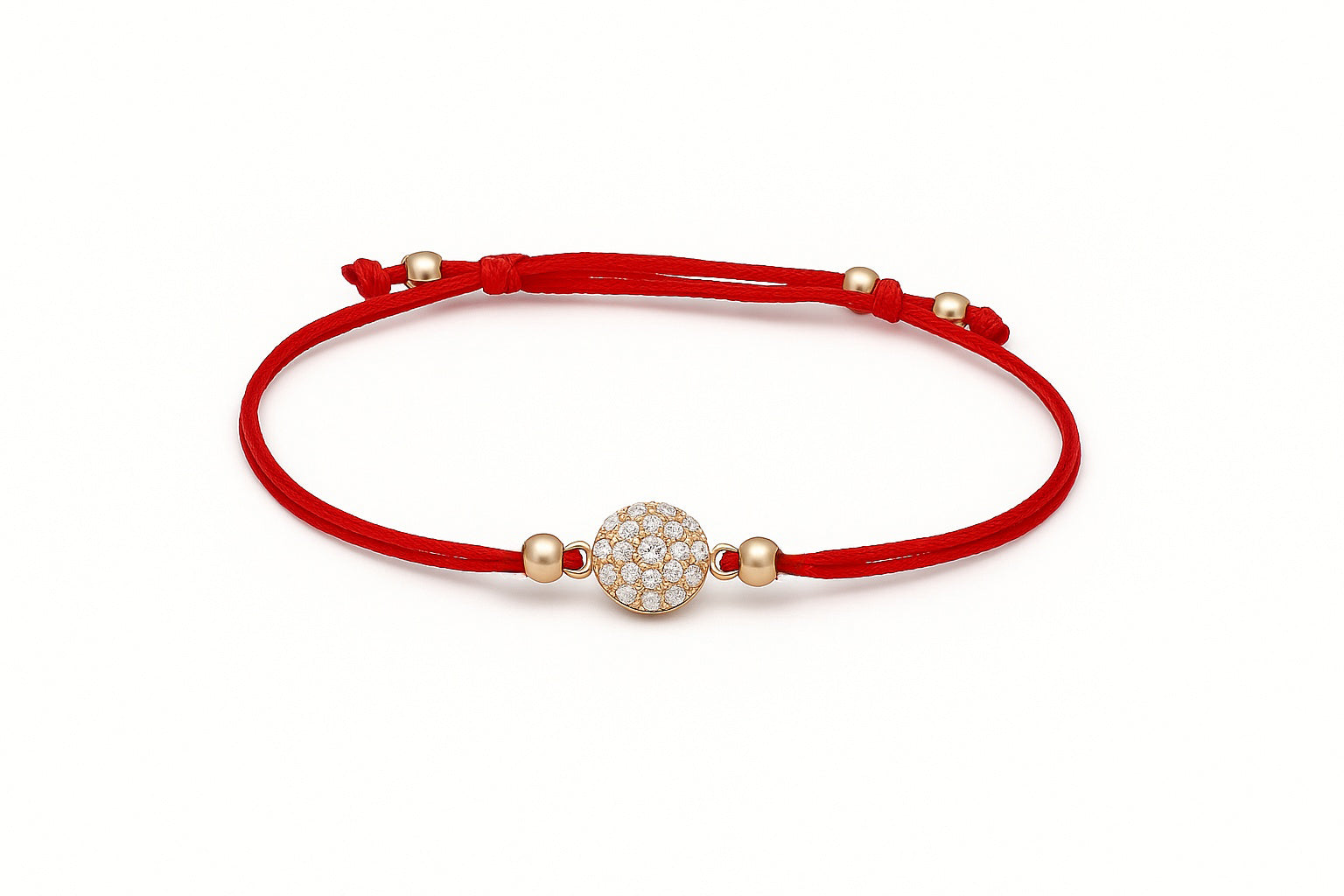 Raudono siūlo apyrankė su auksiniu cirkonio pakabuku