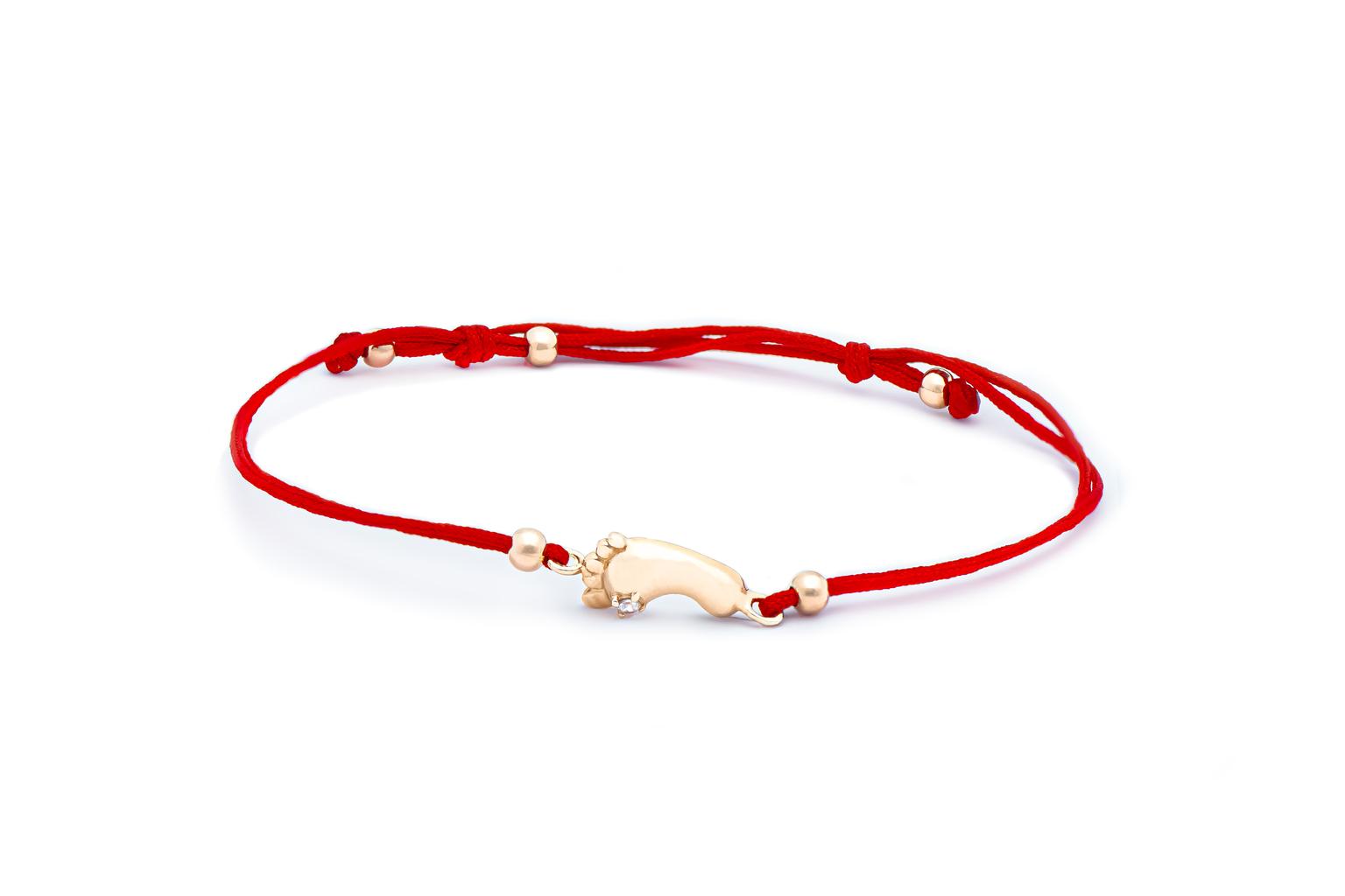 Raudono siūlo apyrankė su auksiniu cirkonio pakabuku