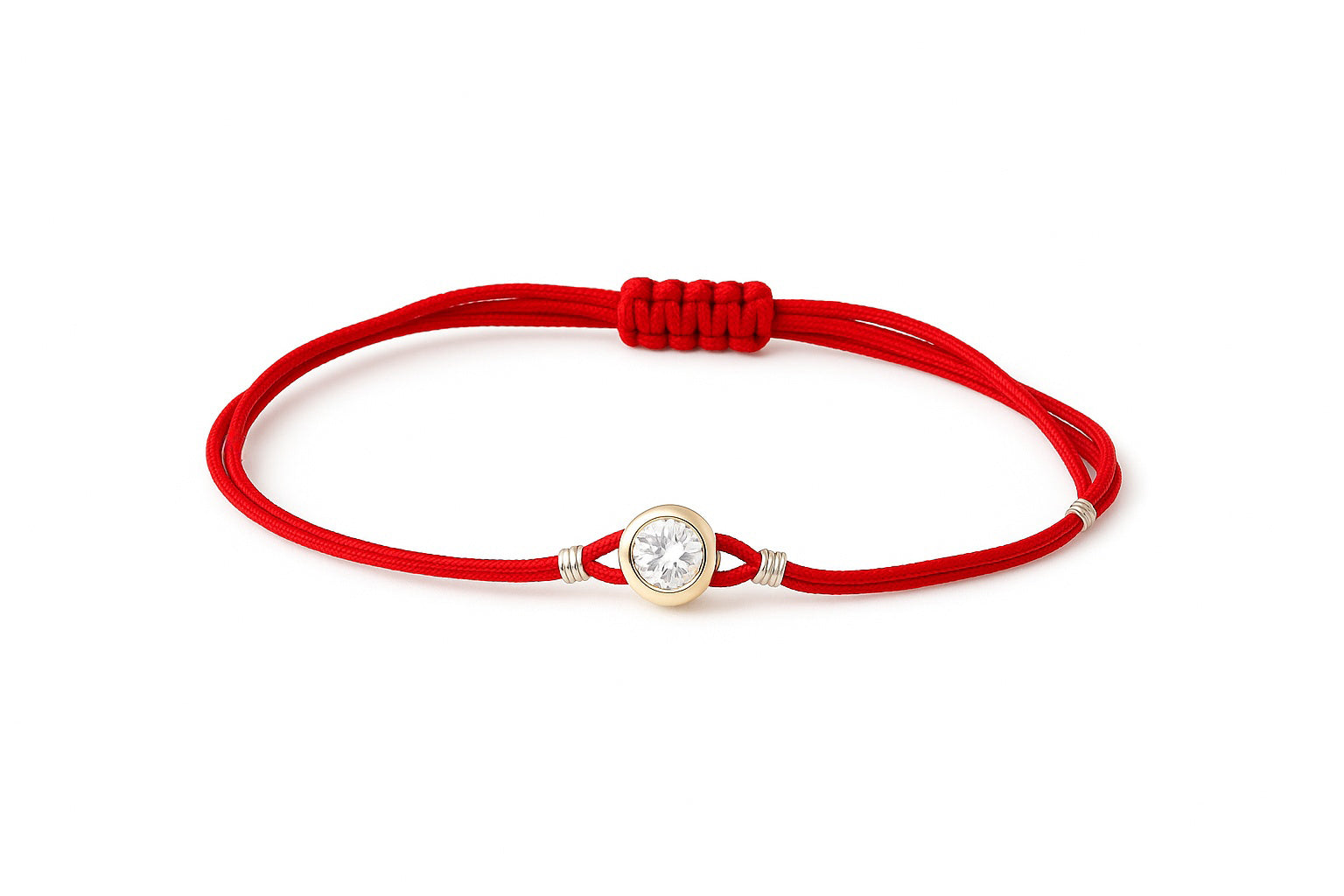 Raudono siūlo apyrankė su auksiniu cirkonio pakabuku