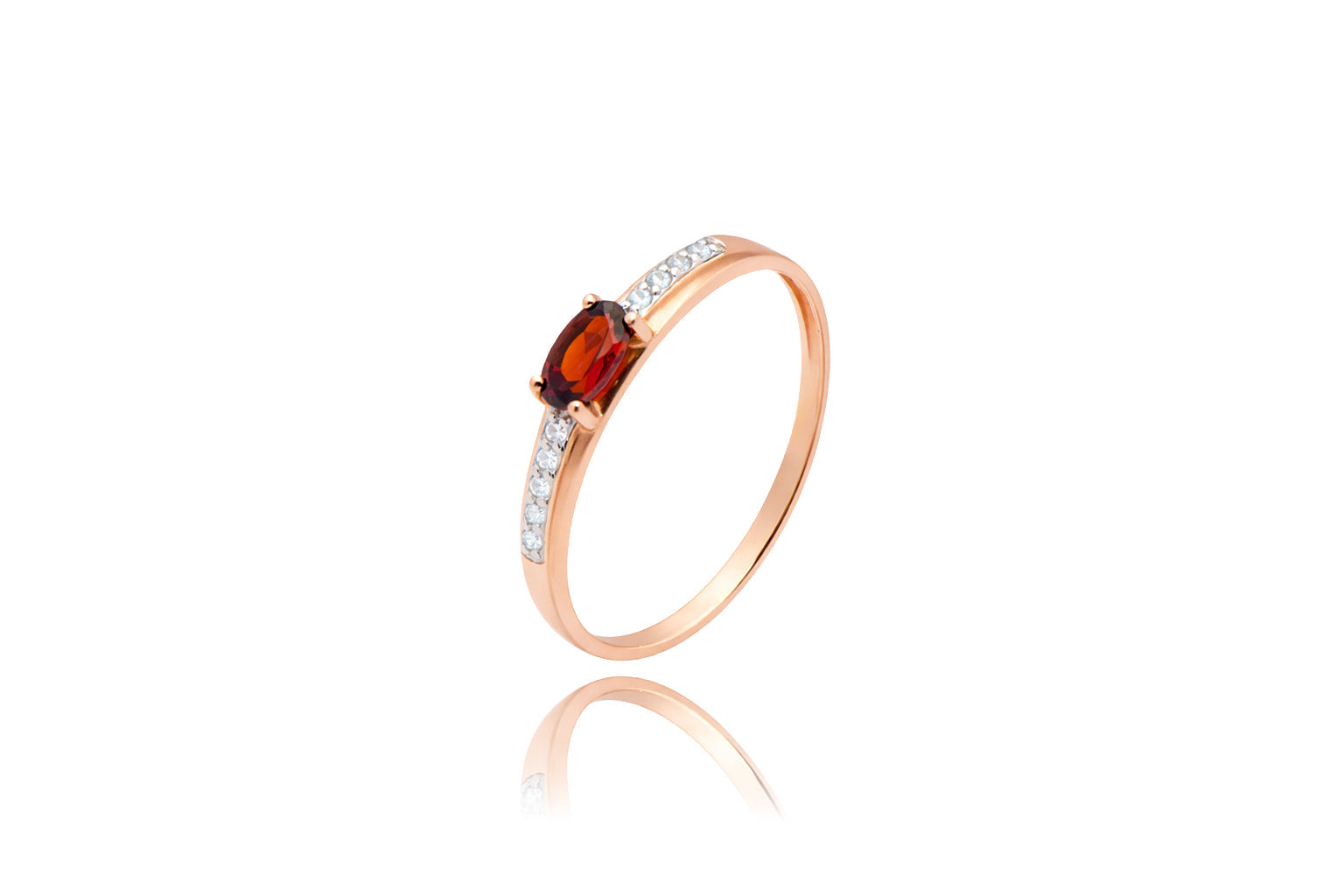 Auksinis žiedas su granatu ir cirkoniais