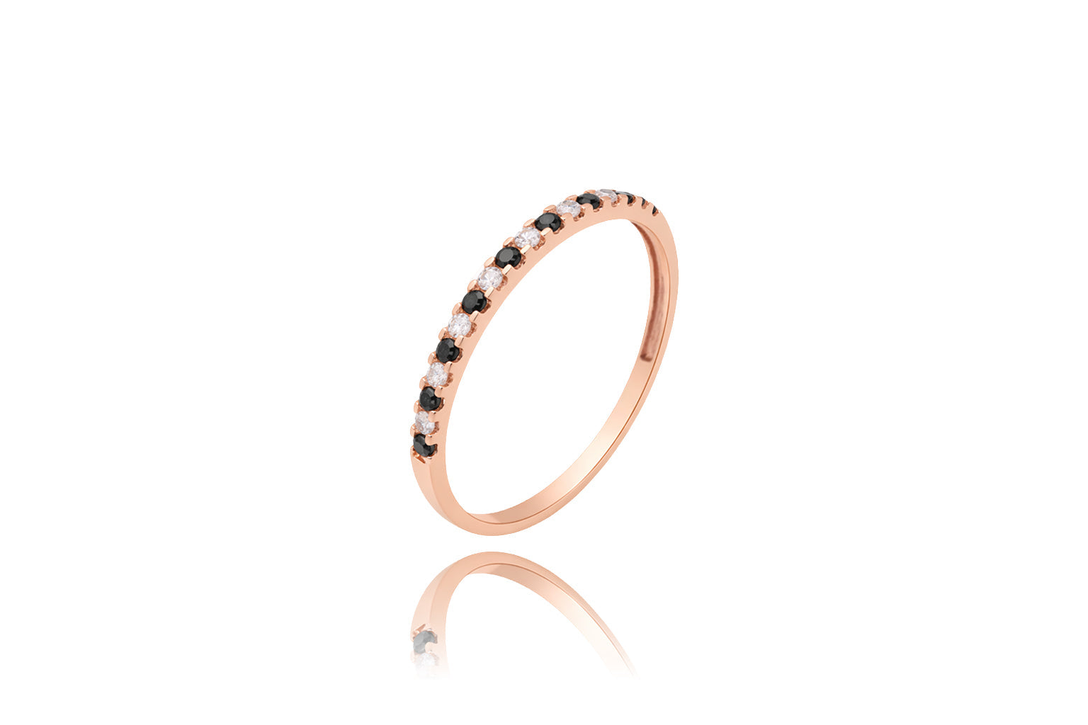 Auksinis žiedas su juodais ir skaidriais cirkoniais