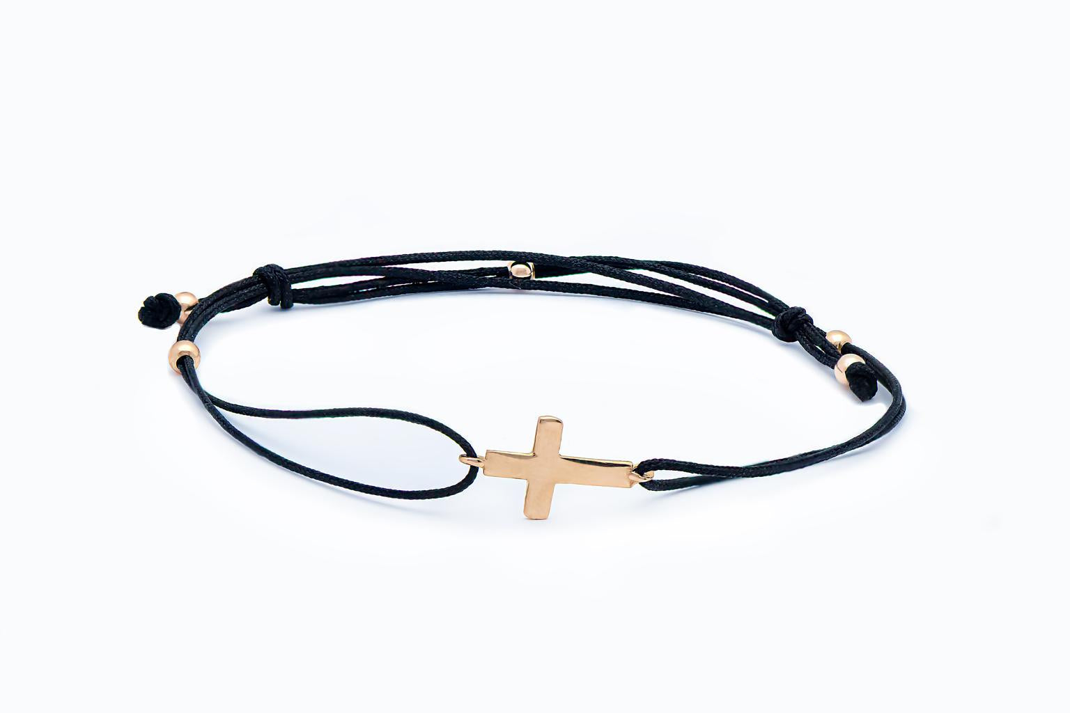 Black thread bracelet with gold pendant