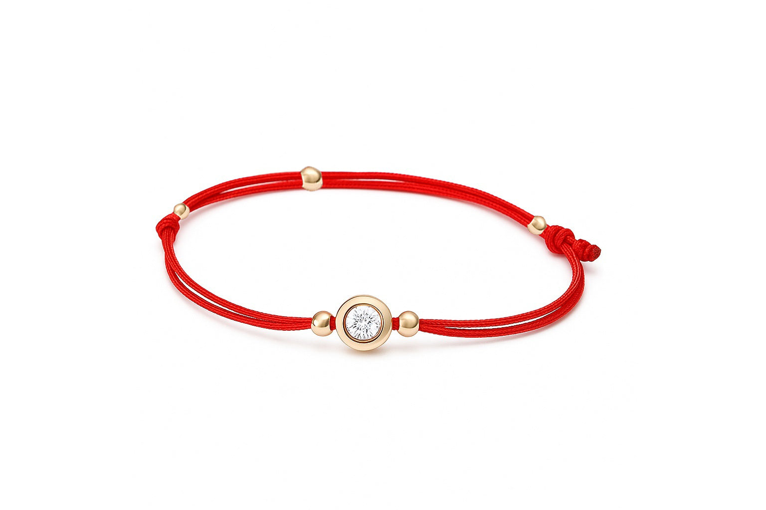 Raudono siūlo apyrankė su auksiniu cirkonio pakabuku