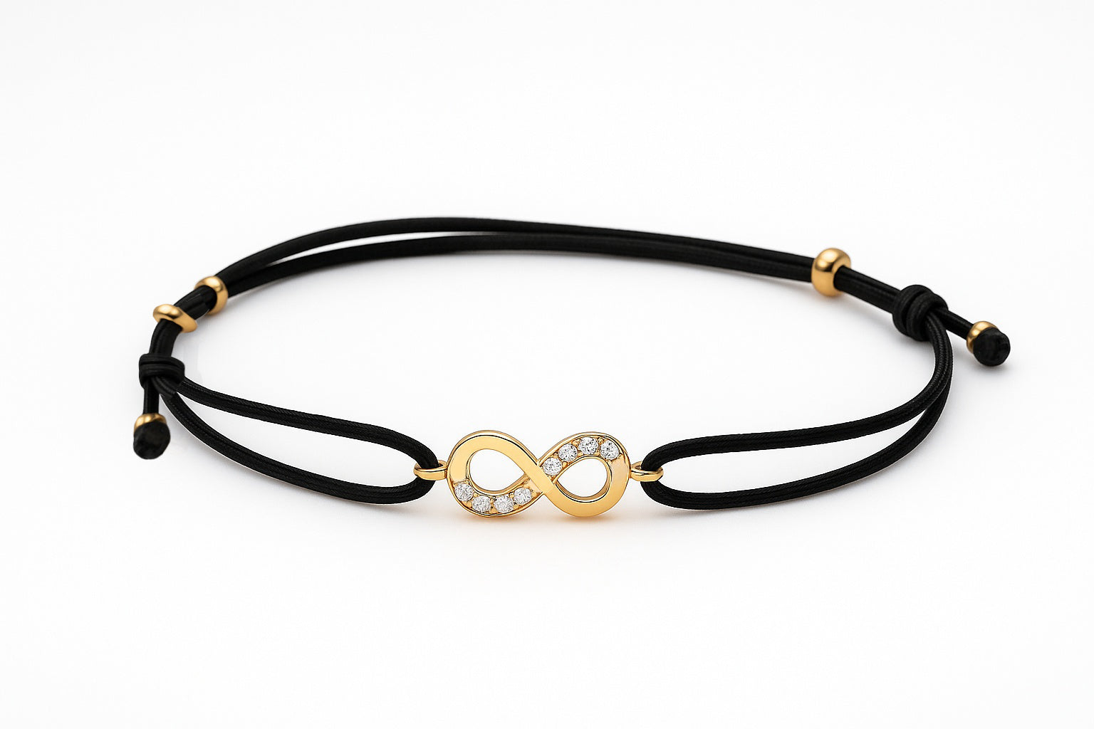 Juodo siūlo apyrankė su auksiniu cirkonio pakabuku